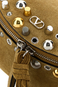 Belt bag realized in suede enriched by VLogo Signature metal detail at the top and metal studs at the front and at the top. - Tonal suede adjustable strap - Zip closure - Lined interior with a credit card slot DETAILS Beige suede Nellcote belt bag Exterior: 100% Suede Lining: 100% Suede Made in italy Width: 30 cm Height: 9 cm Depth: 7 cm Min shoulder strap length: 8 cm Max shoulder strap length: 38 cm