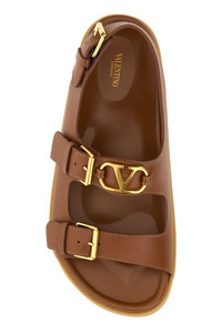 Sandals realized in smooth leather enriched by VLogo Signature metal detail on the instep. - Adjustable straps closure on the instep - Round toe - Printed logo on the inside DETAILS Biscuit leather sandals Exterior: 100% Leather Interior: 100% Leather Sole: Rubber Made in italy