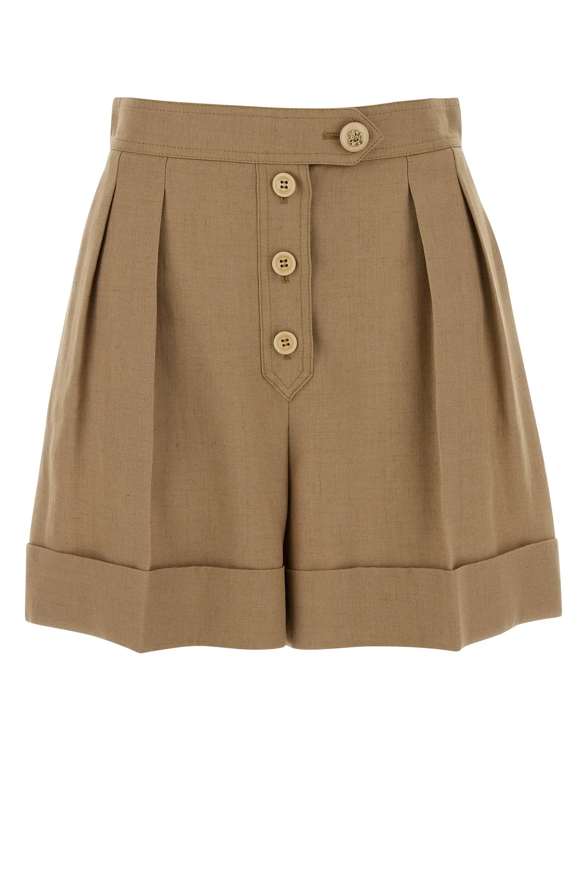 Shorts realized in viscose and silk. - Buttons closure - Slant pockets and two slit pockets at the back - Folded cuffs - Inverted pleats DETAILS Biscuit viscose blend shorts Exterior: 86% Viscose 14% Silk Made in italy Sample size: 38