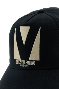 Baseball cap realized in pure cotton characterized by contrasting Chez Valentino embroidery at the front. - Curved visor - Ventilation holes - Adjustable strap with metal buckle at the back - Lined DETAILS Black cotton baseball cap Exterior: 100% Cotton Lining: 100% Cotton Made in italy