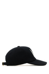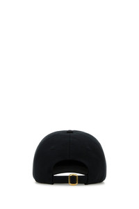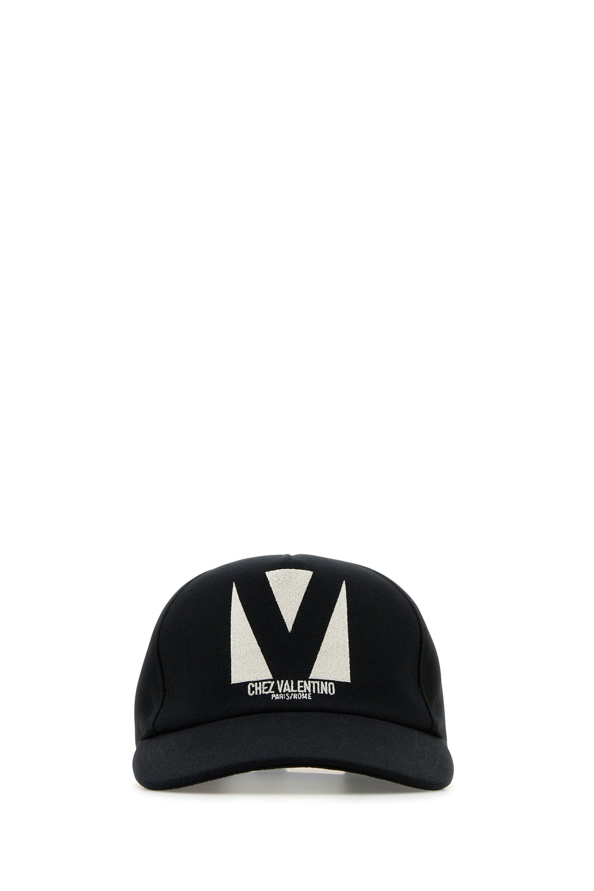 Baseball cap realized in pure cotton characterized by contrasting Chez Valentino embroidery at the front. - Curved visor - Ventilation holes - Adjustable strap with metal buckle at the back - Lined DETAILS Black cotton baseball cap Exterior: 100% Cotton Lining: 100% Cotton Made in italy