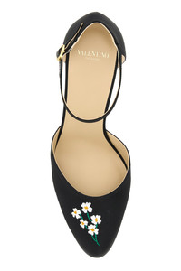Pumps realized in fabric characterized by floral embroidery on the tapered toe and on the heel. - Adjustable ankle strap closure - Printed logo on the inside - VLogo Signature metal detail on the heel DETAILS Black fabric Hi Dolly pumps Exterior: 100% Fabric Interior: 100% Leather Sole: Leather Made in italy Heel height: 10,5 cm