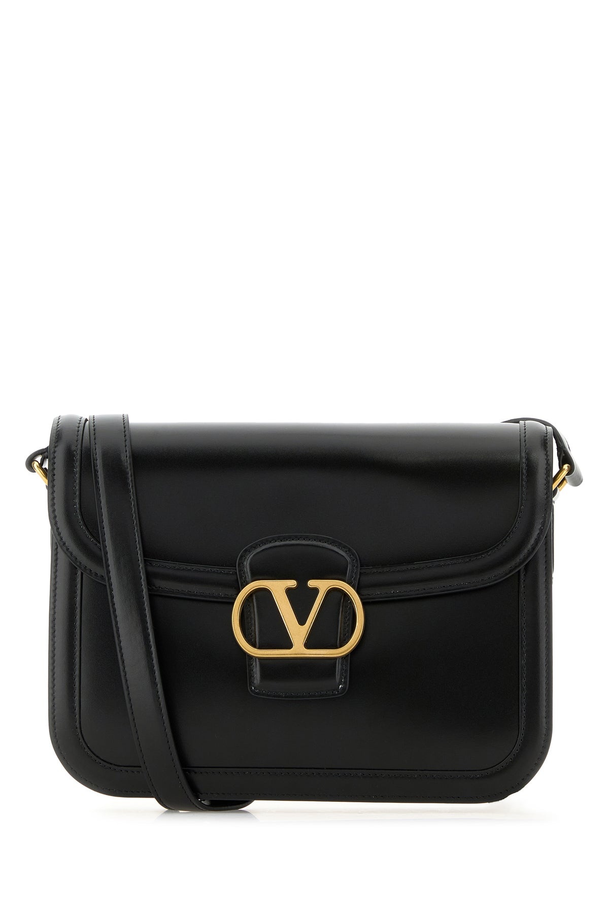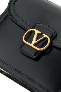 Shoulder bag realized in smooth leather enriched by metal VLogo detail at the front. - Adjustable tonal leather shoulder strap - Magnetic button closure under the flap - Lined interior with a compartment, a patch pocket and two slit pockets DETAILS Black leather 9TO5 shoulder bag Exterior: 100% Leather Lining: 100% Nappa leather Finishing: Golden metal Made in italy Width: 24,5 cm Height: 18,5 cm Depth: 8 cm Min shoulder strap length: 33 cm Max shoulder strap length: 54 cm