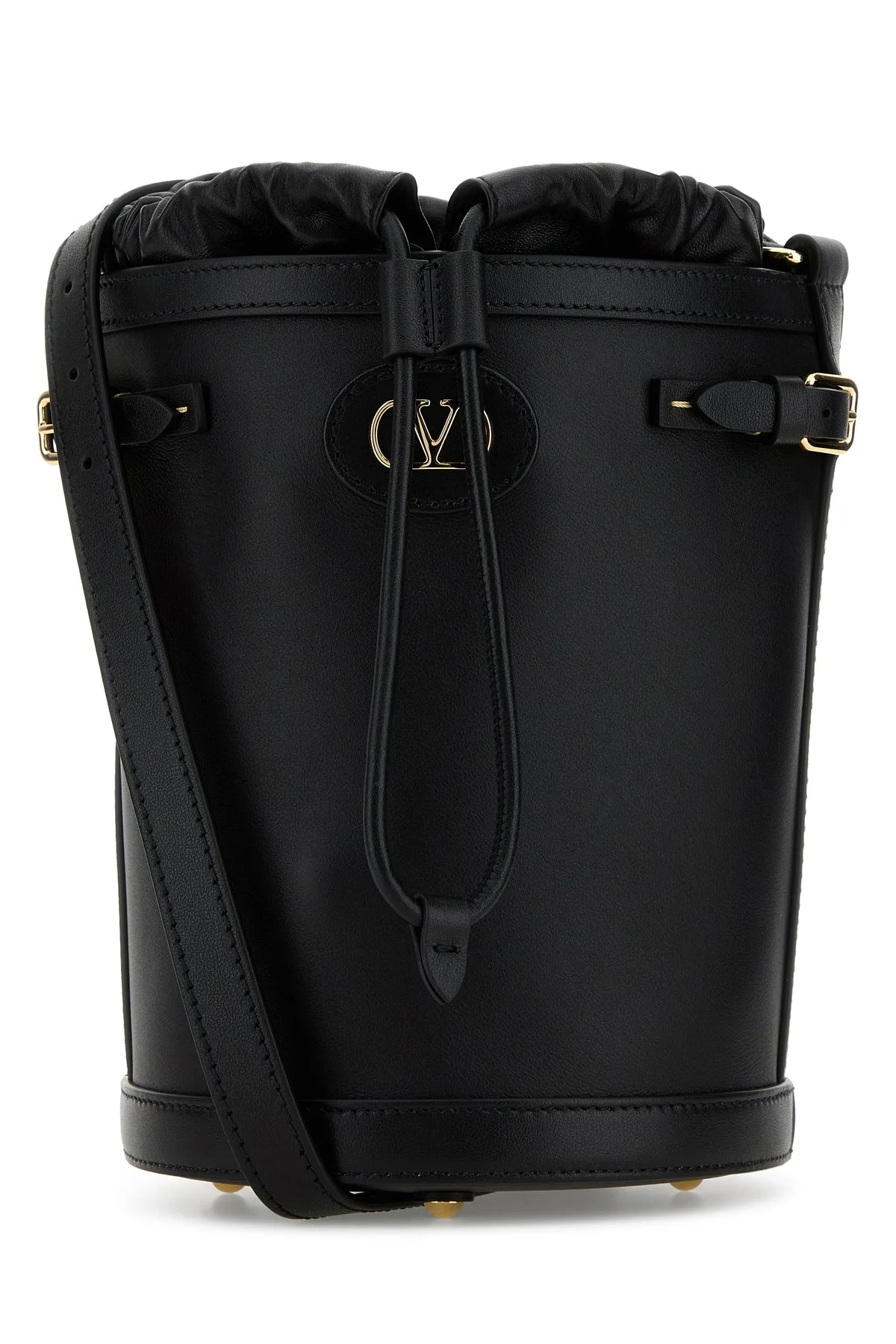 Bucket bag realized in smooth leather enriched by VLogo Signature metal detail at the front. - Adjustable tonal leather shoulder strap - Drawstring closure - Lined - Protective metal feet at the base DETAILS Black leather Antibes bucket bag Exterior: 100% Leather Lining: 100% Suede Finishing: Golden metal Made in italy Width: 20 cm Height: 25 cm Depth: 15 cm Min shoulder strap length: 45 cm Max shoulder strap length: 55 cm