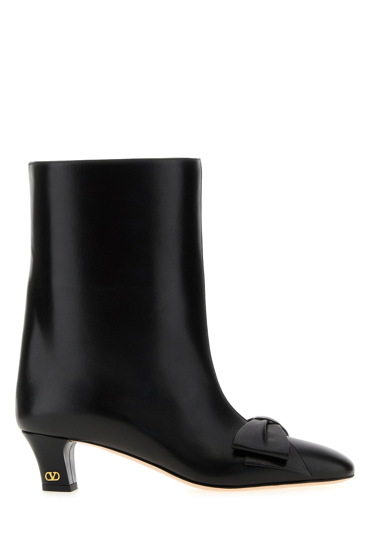 Ankle boots realized in slightly pebble leather enriched by decorative bow on the instep and VLogo Signature metal detail on the thick heel. - Round toe - Printed logo on the inside DETAILS Black leather Bowow ankle boots Exterior: 100% Leather Interior: 100% Leather Sole: Leather Made in italy Heel height: 5 cm