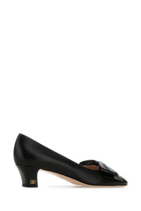Pumps realized in smooth ovine leather enriched by tonal leather decorative bow at the front and metal VLogo detail on the heel. - Round toe - Printed logo on the inside - Thick heel DETAILS Black leather Bowow pumps Exterior: 100% Ovine leather Interior: 100% Leather Sole: Leather Made in italy Heel height: 4,5 cm