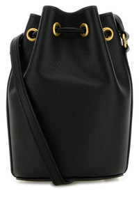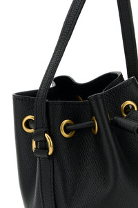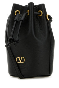 Bucket bag realized in pebble leather enriched by VLogo Signature metal detail at the front. - Adjustable tonal leather shoulder strap - Drawstring closure - Lined DETAILS Black leather bucket bag Exterior: 100% Leather Lining: 100% Leather Finishing: Antiqued golden metal Made in italy Width: 12 cm Height: 18 cm Depth: 8 cm Min shoulder strap length: 51 cm Max shoulder strap length: 58 cm