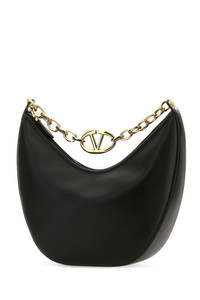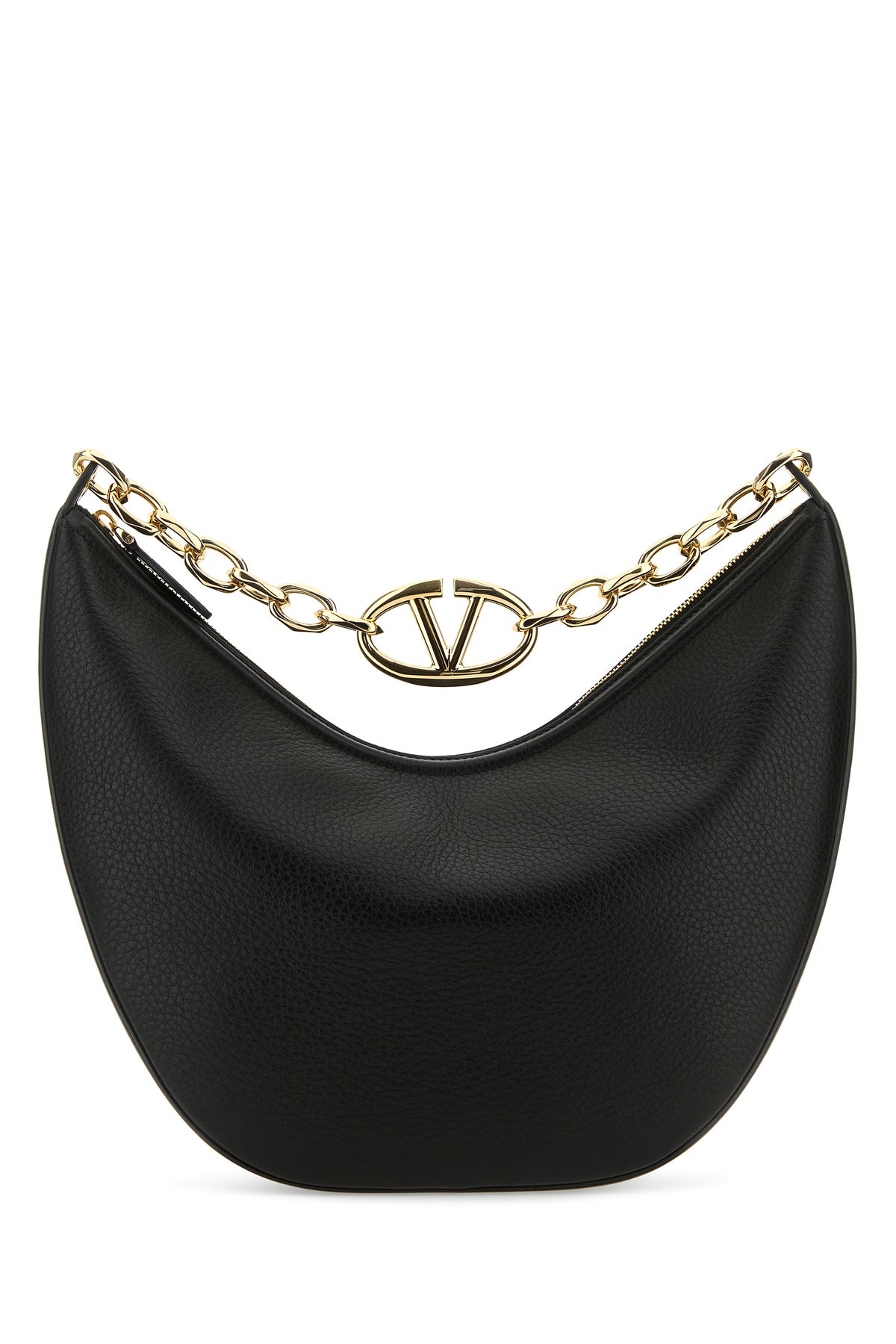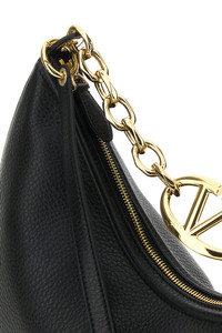 Shoulder bag realized in pebble calf leather characterized by printed logo at the back. - A metal chain handle - Detachable tonal leather shoulder strap - Zip closure - Lined interior with a credit card slot DETAILS Black leather medium Hobo VLogo Moon shoulder bag Exterior: 100% Calf Lining: 100% Leather Finishing: Golden metal Made in italy Width: 26 cm Height: 22 cm Depth: 11 cm Handle height: 23 cm Shoulder strap length: 62 cm
