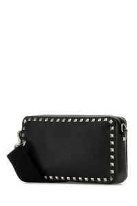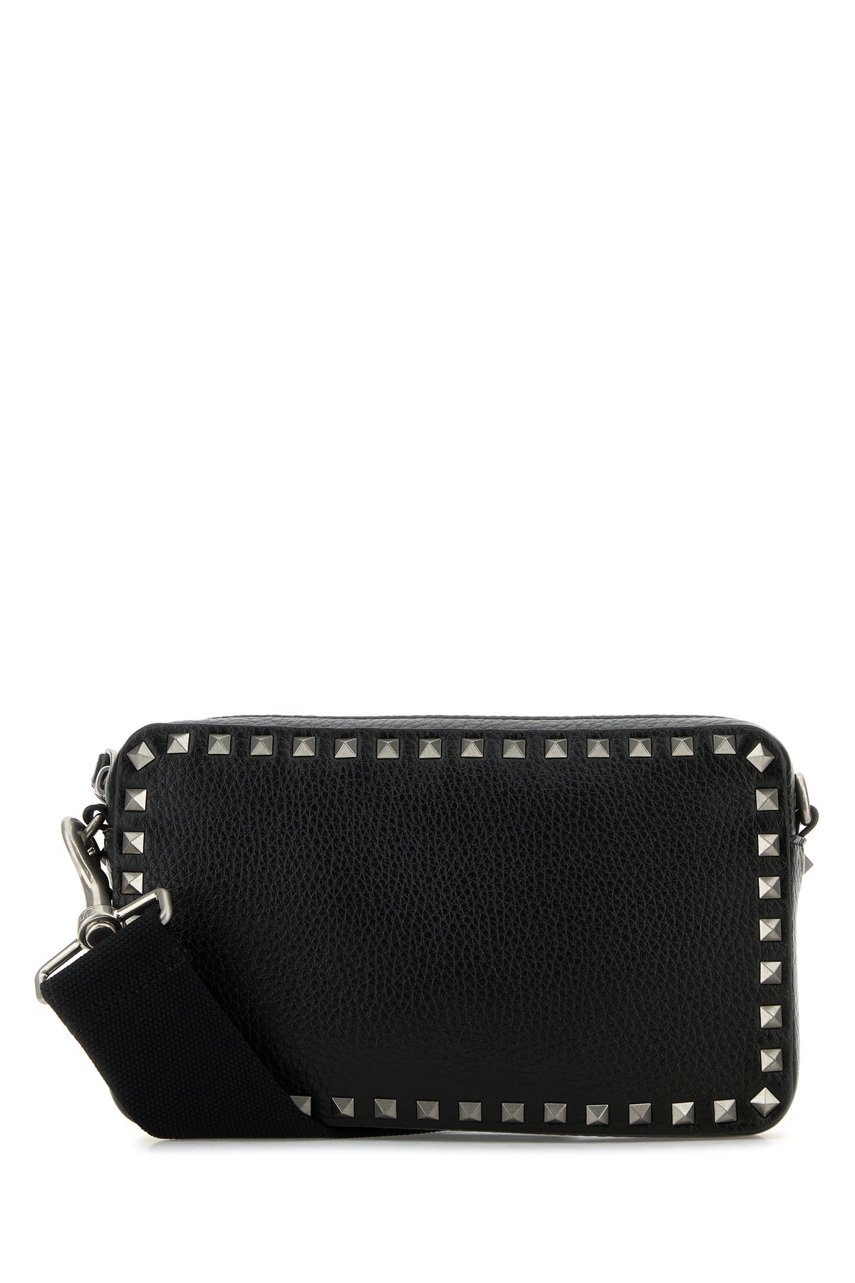 Crossbody bag realized in smooth calf leather characterized by embossed logo at the back enriched by metal studs on the trimmings. - Adjustable detachable tonal fabric shoulder strap - Zip closure - Lined DETAILS Black leather Rockstud crossbody bag Exterior: 100% Calf Fodera: 100% Leather Finishing: Silver metal Made in italy Width: 24 cm Height: 14,5 cm Depth: 6 cm Min shoulder strap length: 35 cm Max shoulder strap length: 68 cm