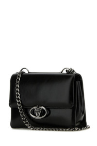 Shoulder bag realized in polished-finish smooth leather enriched by metal VLogo detail at the front. - Metal chain shoulder strap with tonal leather shoulder pad that can be worn single or double - Snap-fit closure - A flap pocket under the flap - Lined interior with a a zip pocket DETAILS Black leather small VLogo shoulder bag Exterior: 100% Leather Lining: 100% Leather Finishing: Gunmetal Made in italy Width: 22 cm Height: 15 cm Depth: 6,5 cm Handle height: 31 cm Shoulder strap length: 58 cm