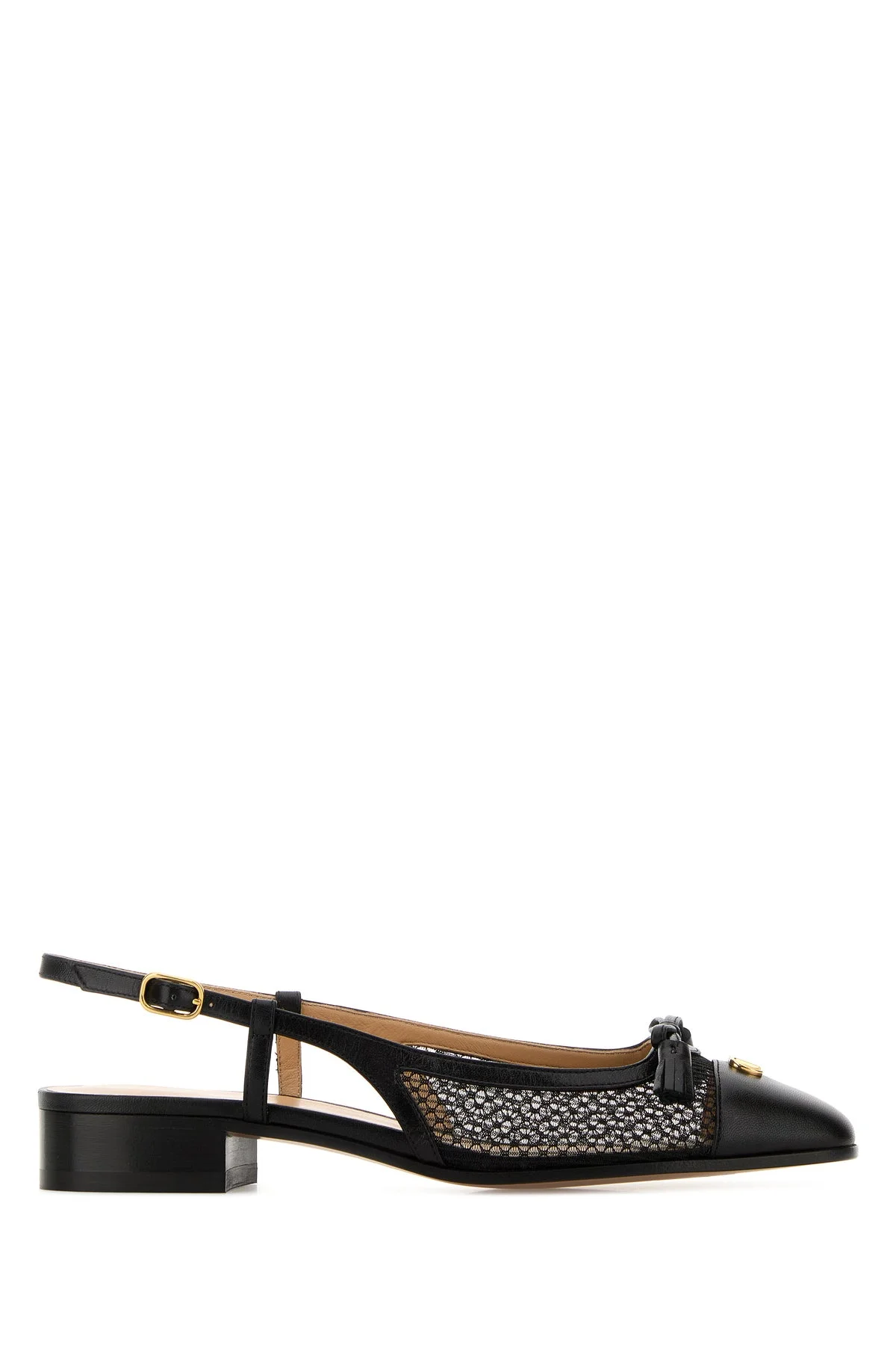 Slingback ballerinas realized in mesh and leather enriched by VLogo Signature metal detail and decorative tassels on the instep. - Round toe - Adjustable strap on the instep - Printed logo on the inside DETAILS Black mesh and leather ballerinas Exterior: 100% Leather 100% Fabric Interior: 100% Leather 100% Fabric Sole: Leather Made in italy