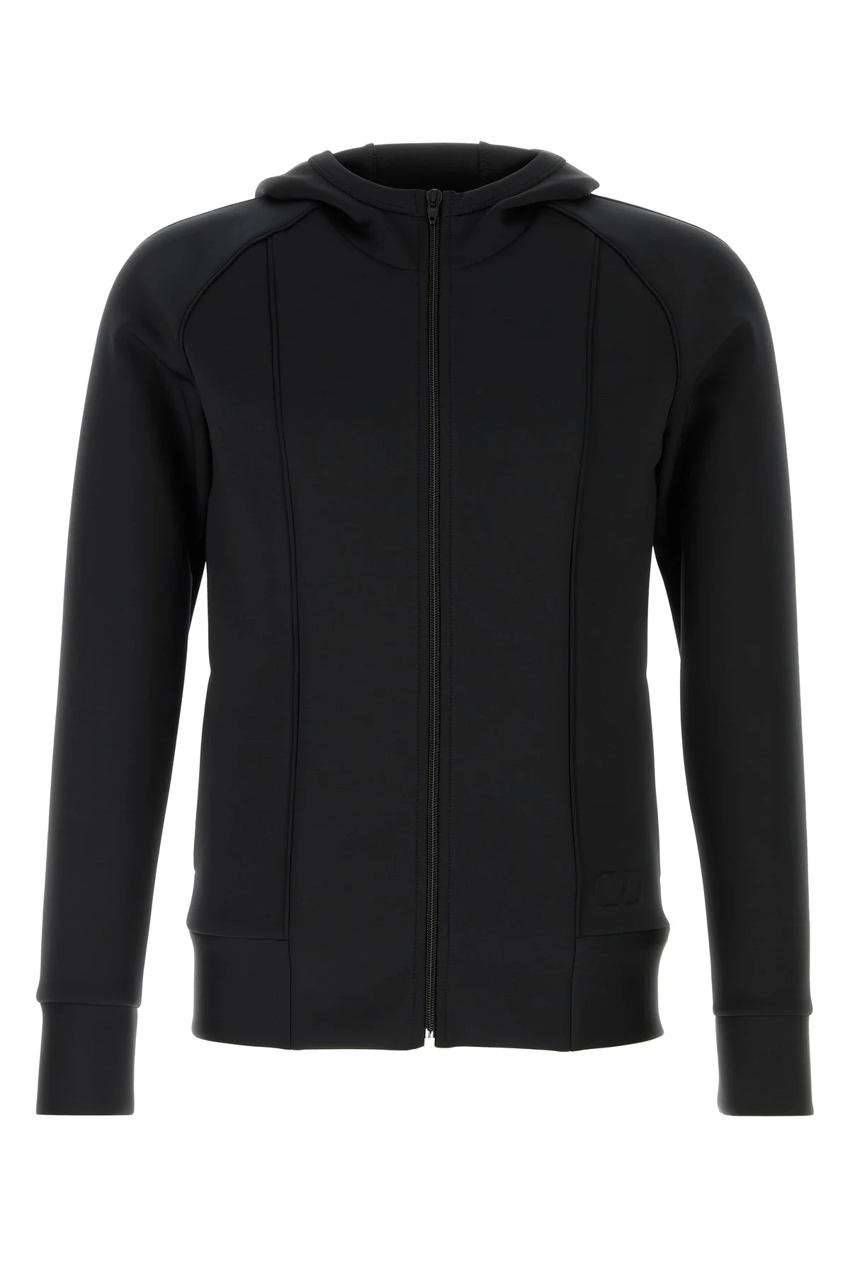 Sweatshirt realized in neoprene characterized by VLogo motif in relief at the front. - Hood - Zip closure - Seam pockets DETAILS Black neoprene sweatshirt Exterior: 85% Polyester 15% Elastane Made in italy Sample size: L