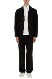 Pant realized in stretch cotton characterized by central seam pleats enriched by logoed metal detail at the back. - Elastic waist with inner drawstring - Seam pockets and two patch pockets at the back DETAILS Exterior: 98% Cotton 2% Elastane Made In Italy Model is 190 cm and is wearing a size 48