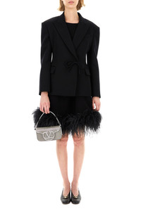 Blazer realized in pure virgin wool enriched by tonal decorative bow at the front. - Peak lapels - Padded shoulders - Single-breasted closure by concealed button - Chest pocket and two flap pockets at the front - Buttoned cuffs - Lined DETAILS Black wool blazer Exterior: 100% Virgin wool Lining: 100% Cupro Made in italy Model is 177 cm and is wearing a size 38