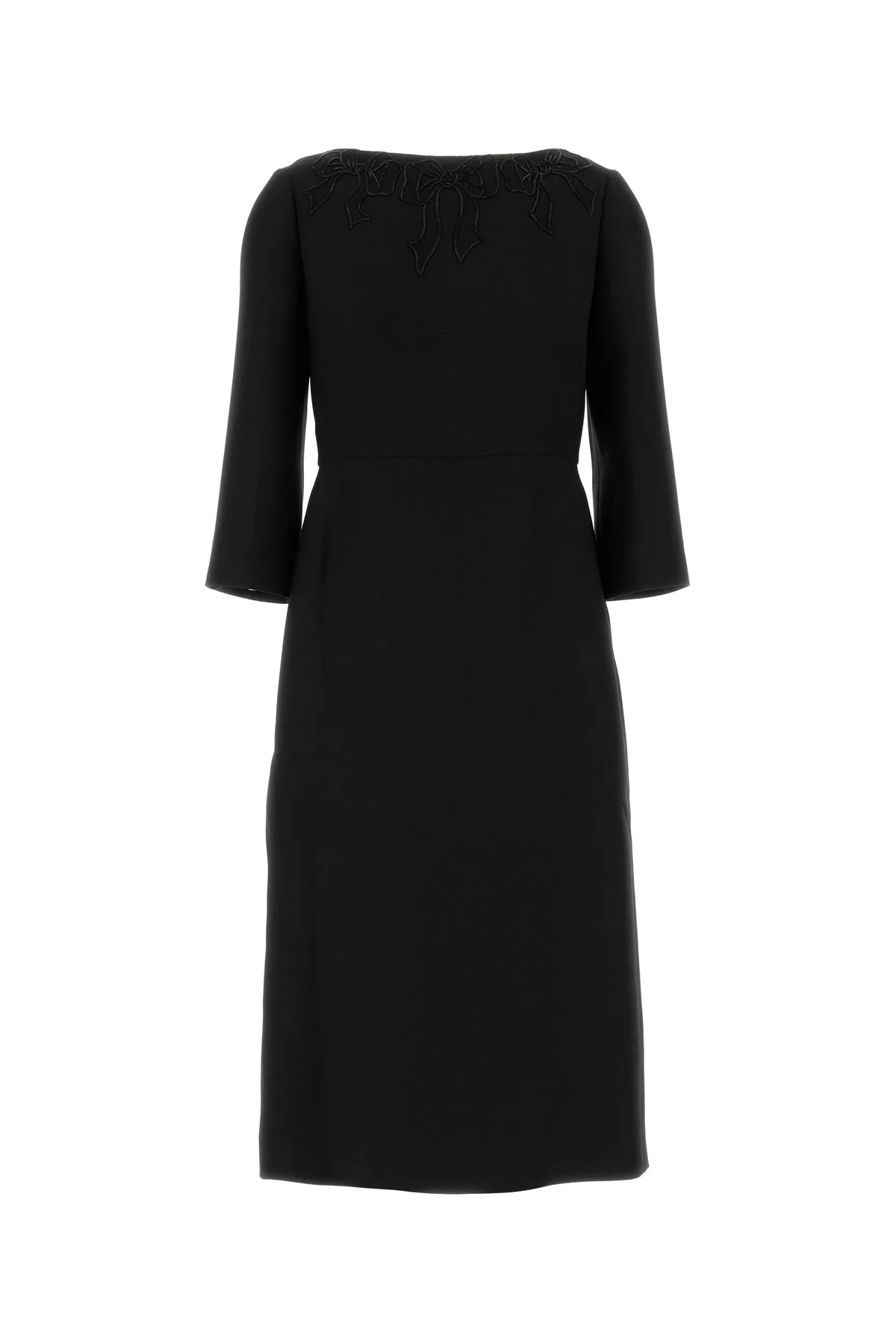 Dress realized in virgin wool and silk characterized by embroideries with beads on the crew-neck. - Concealed zip closure at the back - Central slit at the back - Unlined DETAILS Black wool blend dress Exterior: 65% Virgin wool 35% Silk Lining: 91% Silk 9% Elastane Made in italy Sample size: 44