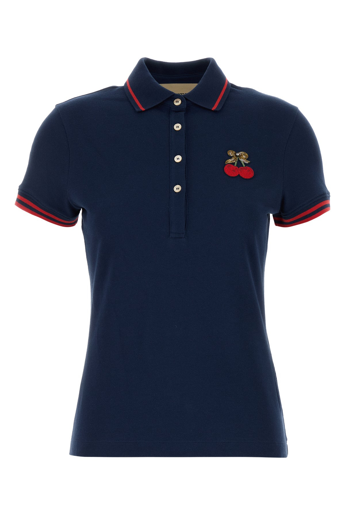 cherry-embellished polo top