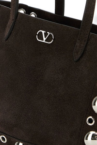 Shopping bag realized in suede enriched by VLogo Signature metal detail at the front and metal studs on the trimmings. - Two tonal suede handles - Lined interior with a zip pocket DETAILS Brown suede Nellcote shopping bag Exterior: 100% Suede Lining: 100% Suede Finishing: Silver metal Made in italy Width: 21 cm Height: 16 cm Depth: 5 cm Handle height: 18 cm