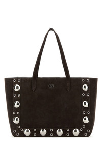 Shopping bag realized in suede enriched by VLogo Signature metal detail at the front and metal studs on the trimmings. - Two suede flat handles - Unlined interior with a pouch DETAILS Brown suede Nellcote shopping bag Exterior: 100% Suede Lining: 100% Suede Finishing: Silver metal Made in italy Width: 40 cm Height: 30 cm Depth: 13 cm Handle height: 24 cm