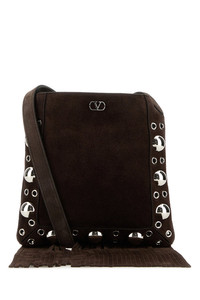 Crossbody bag realized in suede enriched by VLogo Signature metal detail at the top. - Tonal leather adjustable strap - Metal studs on the trimmings - Fringes on the hemline - Lined DETAILS Brown suede small Nellcote crossbody bag Exterior: 100% Suede Lining: 100% Suede Finishing: Silver metal Made in italy Width: 21 cm Height: 21 cm Depth: 2 cm Min shoulder strap length: 52 cm Max shoulder strap length: 57 cm