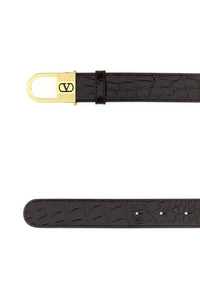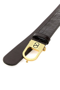 Belt realized in polished-finish alligator leather enriched by metal VLogo buckle. - Press-stud closure DETAILS Dark brown leather VLogo Signature belt Exterior: 100% Alligator Finishing: Antiqued golden brass Made in italy Height: 3 cm
