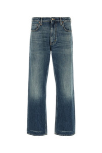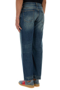 Jeans realized in stonewashed pure cotton denim enriched by leather logoed label at the back. - Belt loops at the waist - Concealed zip and a single visible button closure - Five classic pockets - Distressed details on the hemline DETAILS Denim jeans Exterior: 100% Cotton Made in italy Model is 190 cm and is wearing a size 31