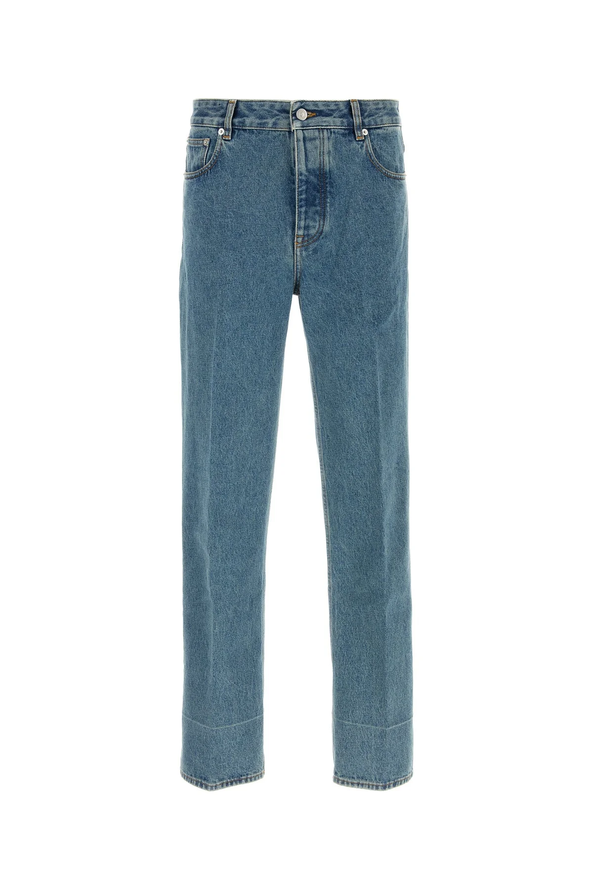 Jeans realized in pure cotton denim enriched by contrasting logoed label at the back. - Belt loops at the waist - Concealed buttons and single visible button closure - Five classic pockets - Central ironed pleats DETAILS Denim jeans Exterior: 100% Cotton Made in italy Model is 190 cm and is wearing a size32