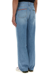 Jeans realized in slightly stonewashed pure cotton denim enriched by fabric inserts with floral print at the top and on the hemline. - Belt loops at the waist - Concealed buttons and a single visible button closure - Five classic pockets - Leather logoed label at the back - Central ironed pleats DETAILS Denim jeans Exterior: 100% Cotton Made in italy Sample size: 34