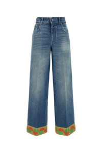 Jeans realized in stonewashed pure cotton denim enriched by peculiar embroidery on the hemline. - Belt loops at the waist - Concealed zip and single visible button closure - Five classic pockets - Central ironed pleats - Contrasting logoed label at the back DETAILS Denim jeans Exterior: 100% Cotton Made in italy Sample size: 26