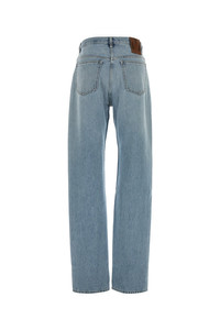 Jeans realized in pure cotton denim enriched by contrasting logoed label at the back. - Belt loops at the waist - Concealed zip and single visible button closure - Five classic pockets DETAILS Denim jeans Exterior: 100% Cotton Made in italy Sample size: 26