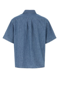 Short-sleeves shirt realized in pure cotton denim characterized by notched lapels. - Buttons closure - A chest pocket - Slightly longer back DETAILS Denim shirt Exterior: 100% Cotton Made in italy Model is 190 cm and is wearing a size 48