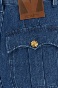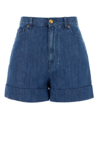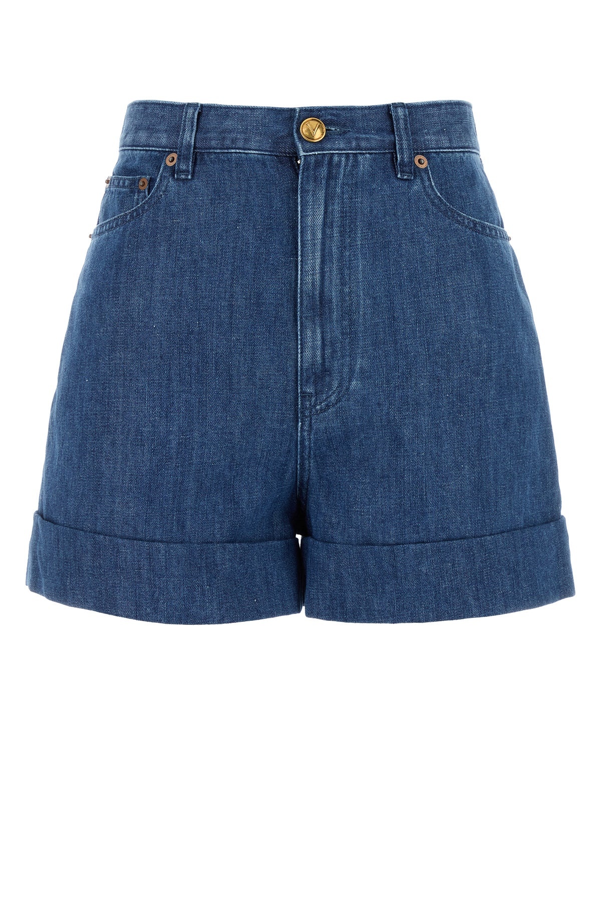 Shorts realized in cotton and linen enriched by contrasting logoed patch at the back. - Belt loops at the waist - Concealed zip and single visible button closure - Five classic pockets - Folded hemline DETAILS Denim shorts Exterior: 64% Cotton 36% Linen Made in italy Sample size: 26