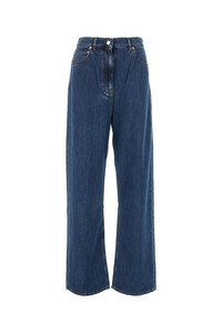 Wide-leg jeans realized in cotton blend denim enriched by contrasting logoed label at the back. - Belt loops at the waist - Concealed zip with single visible button closure - Five classic pockets DETAILS Exterior: 50% Cotton 50% Lyocell Made In Italy Sample size: 26