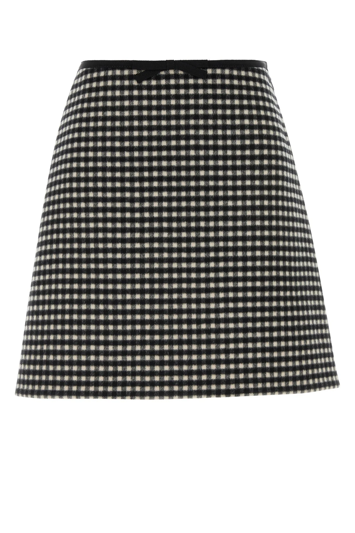 Flared mini skirt realized in virgin wool and cashmere flannel characterized by checked embroidery on the entire surface. - Concealed zip closure on the side - Unlined DETAILS Embroidered flannel mini skirt Exterior: 97% Virgin wool 3% Cashmere Made in italy Sample size: 38