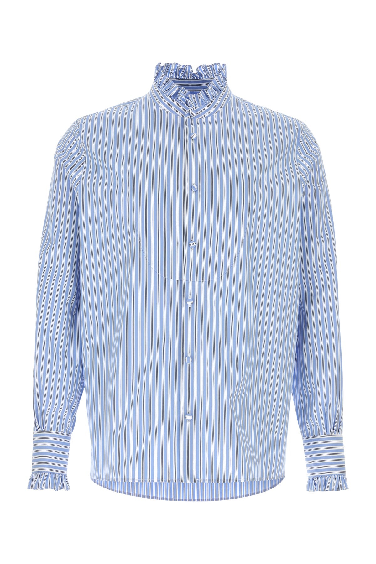STRIPED COTTON SHIRT WITH PLASTRON AND RUFFLES