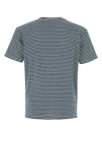 T-shirt realized in stretch linen blend characterized by striped embroidery on the entire surface and printed logo on the chest. - Ribbed crew-neck DETAILS Embroidered stretch linen blend t-shirt Exterior: 64% Linen 34% Cotton 3% Elastane Made in italy Sample size: M