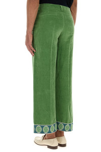 WASHED COTTON-LINEN VELVET PANTS WITH JACQUARD HEMS