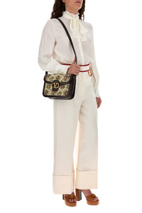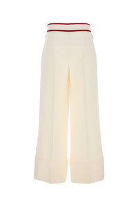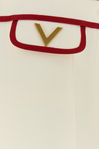 Pant realized in in wool and silk crepe arched by V Gold metal detail at the top. - Concealed zip and hook closure - Central ironed pleats - Folded hemline DETAILS Ivory crepe pant Exterior: 65% Wool 35% Silk Made in italy Sample size: 40