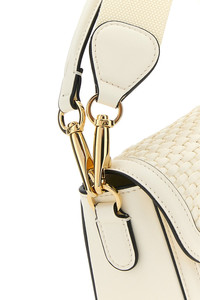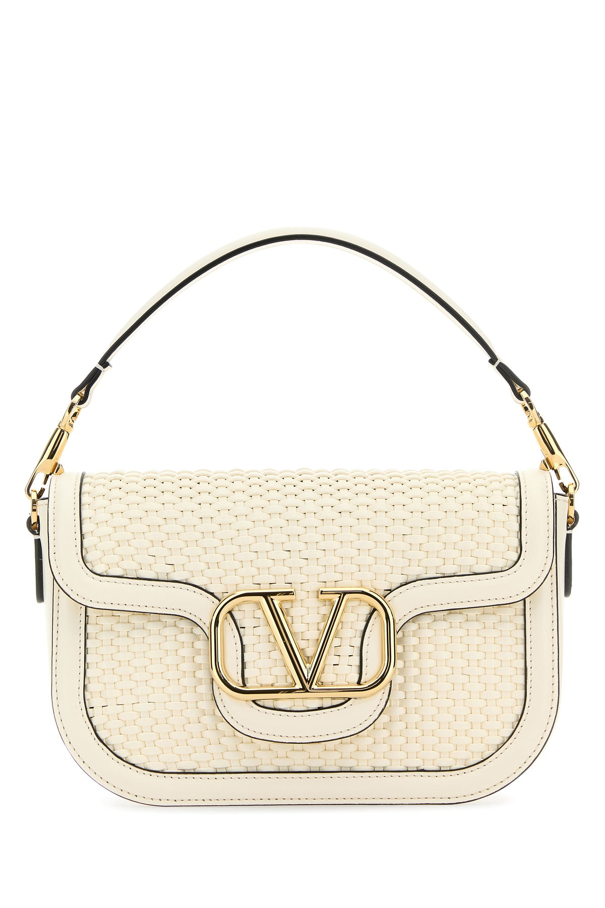 Shoulder bag realized in woven calf leather enriched by metal VLogo detail at the front. - A detachable tonal leather handle - Adjustable detachable tonal fabric shoulder strap - Concealed magnetic button closure - Lined interior with a patch pocket DETAILS Exterior: 100% Calf Lining: 100% Suede Finishing: Antiqued golden metal Made In Italy Width: 23,5 cm Height: 18 cm Depth: 8 cm Handle height: 12 cm Min shoulder strap length: 42 cm Max shoulder strap length: 53 cm