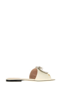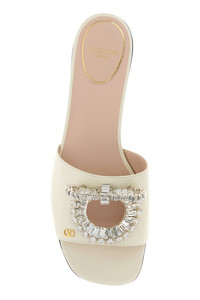Slippers realized in pebble leather enriched by jewel embellishment and VLogo Signature metal detail on the instep. - Squared toe - Printed logo on the inside DETAILS Ivory leather slippers Exterior: 100% Leather Interior: 100% Leather Sole: Leather Made in italy
