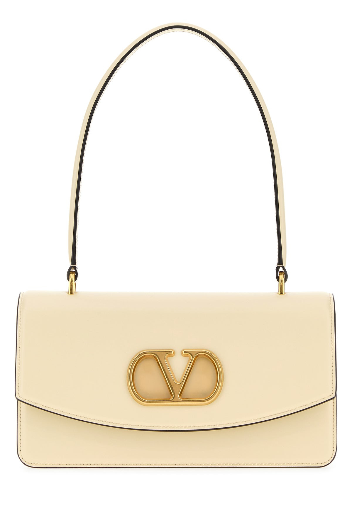 Shoulder bag realized in polished finish calf leather enriched by VLogo Signature metal detail at the front. - A tonal leather round handle - Magnetic button closure - Interior with two gusseted compartments, a slit pocket, a patch pocket and a zip pocket DETAILS Ivory leather Vain shoulder bag Exterior: 100% Calf Lining: 100% Nappa leather Finishing: Golden metal Made in italy Width: 25,5 cm Height: 14,5 cm Depth: 8,5 cm Handle height: 22 cm