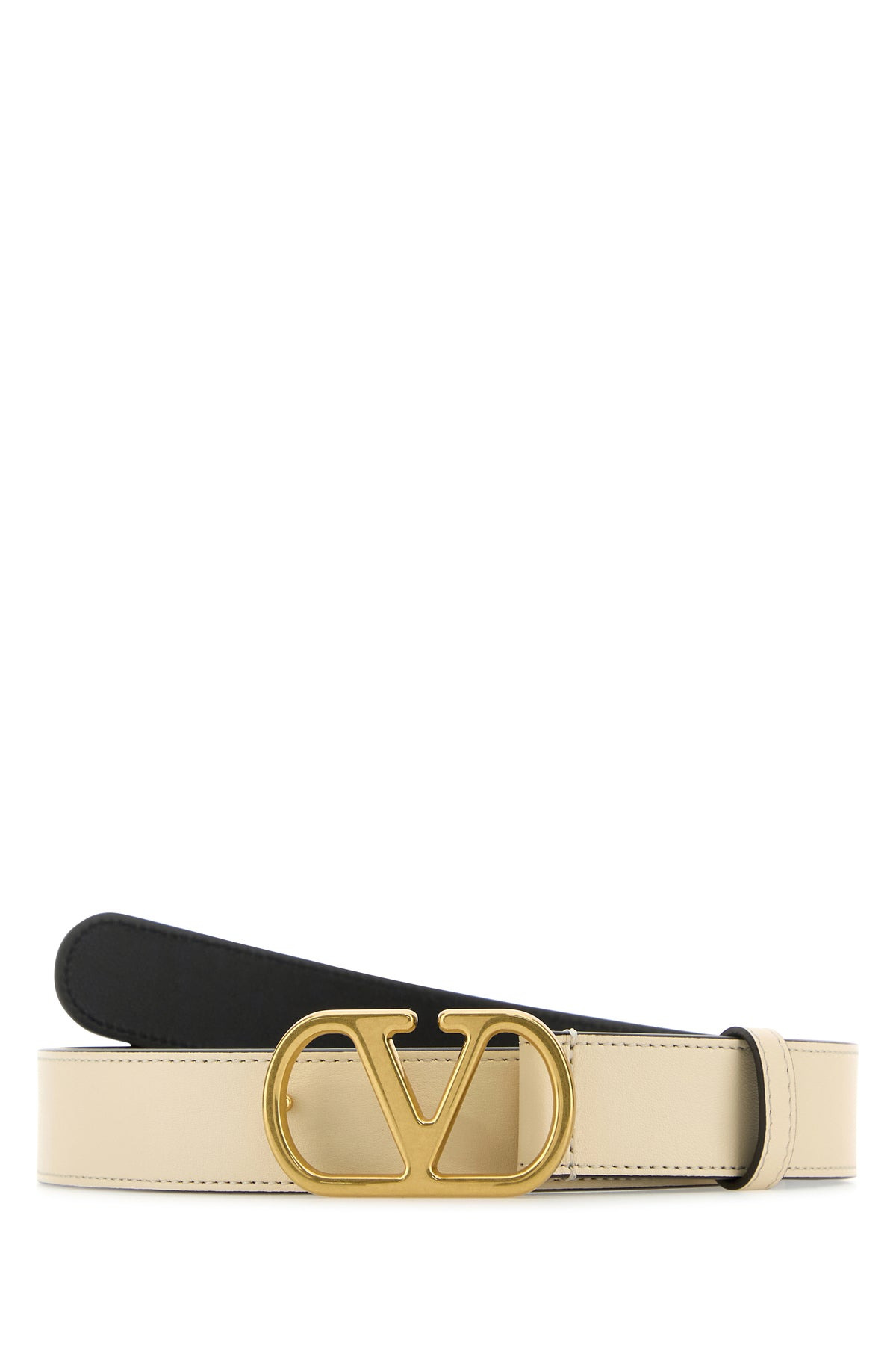 Belt realized in smooth leather enriched by metal VLogo buckle. - Press-stud closure DETAILS Ivory leather VLogo belt Exterior: 100% Leather Finishing: Golden metal Made in italy Height: 3 cm