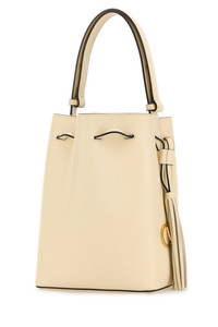 Bucket bag realized in pebble leather enriched by VLogo Signature metal detail on the side. - Adjustable tonal leather handle - Drawstring closure - Decorative tassels on the sides - Lined DETAILS Ivory leather VLogo Signature bucket bag Exterior: 100% Leather Lining: 100% Suede Finishing: Antiqued golden metal Made in italy Width: 23 cm Height: 27 cm Depth: 14 cm Min handle height: 15 cm Max handle height: 25 cm