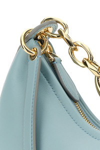 Handbag realized in smooth leather characterized by laminated printed logo at the back. - Metal chain handle with VLogo Signature detail - Detachable tonal leather shoulder strap - Zip closure - Lined interior with a slit pocket DETAILS Exterior: 100% Leather Lining: 100% Nappa leather Finishing: Golden metal Made In Italy Width: 23 cm Height: 20 cm Depth: 8 cm Handle height: 18 cm Shoulder strap length: 55 cm