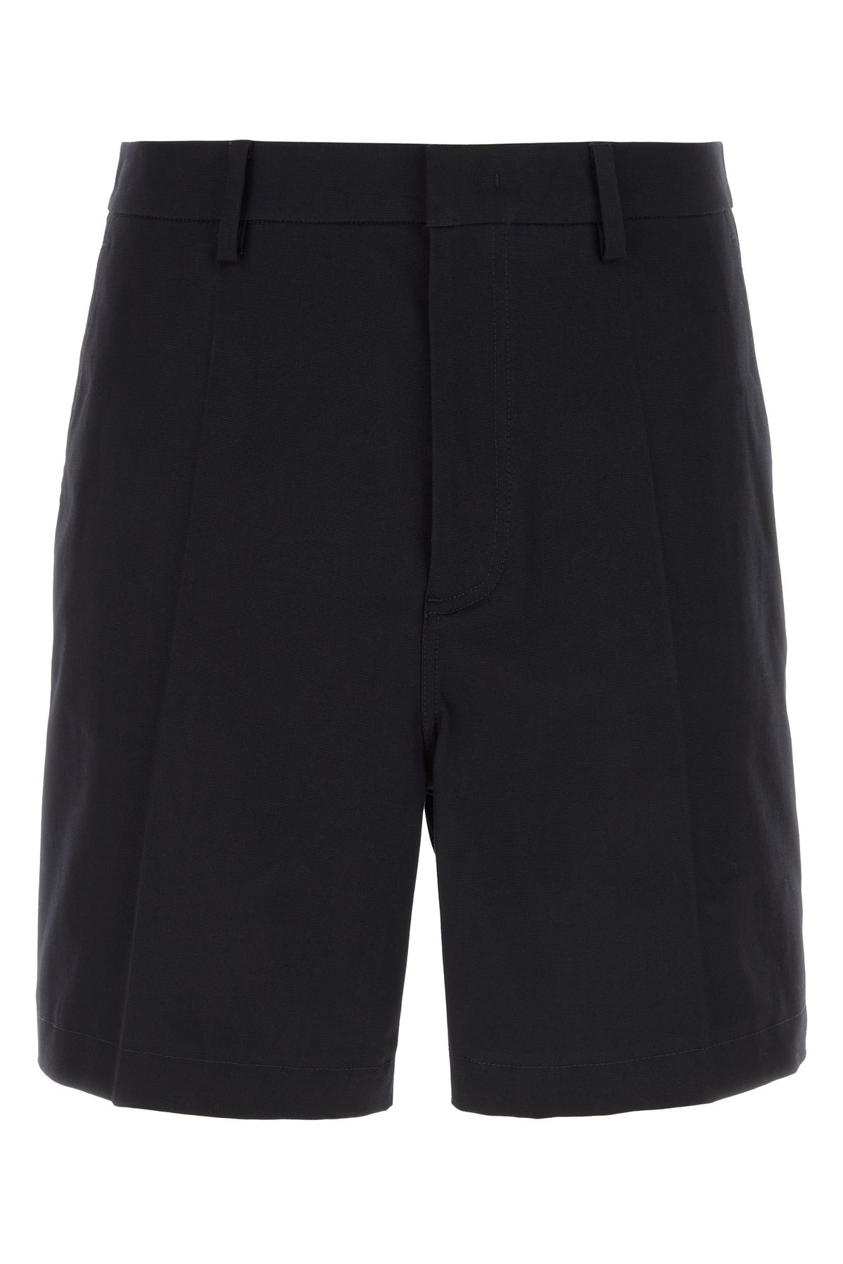 Bermuda shorts realized in stretch cotton enriched by tonal metal detail at the back. - Belt loops at the waist - Central ironed pleats - Concealed zip, hook and button closure - Slant pockets and two patch pockets at the back DETAILS Exterior: 98% Cotton 2% Elastane Made In Italy Model is 190 cm and is wearing a size 48