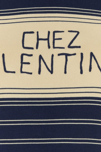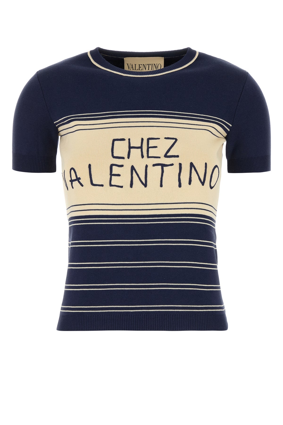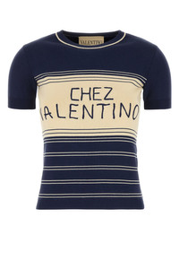 Short-sleeves sweater realized in pure cotton characterized by embroidered logo at the front. - Ribbed crew-neck, cuffs and hemline DETAILS Navy blue cotton sweater Exterior: 100% Cotton Made in italy Sample size: S