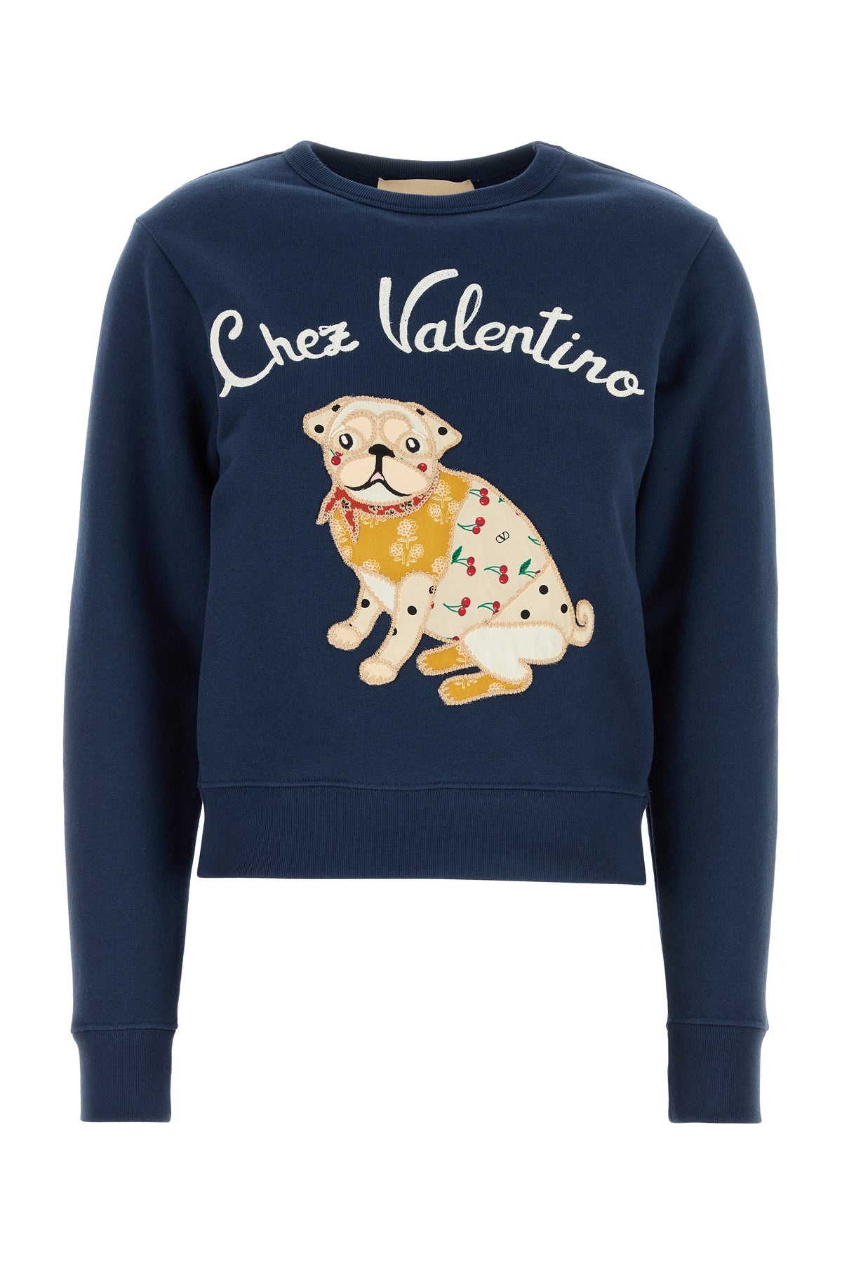 Sweatshirt realized in pure cotton enriched by peculiar patch at the front. - Ribbed crew-neck, cuffs and hemline DETAILS navy blue cotton sweatshirt Exterior: 100% Cotton Made in italy Sample size: S