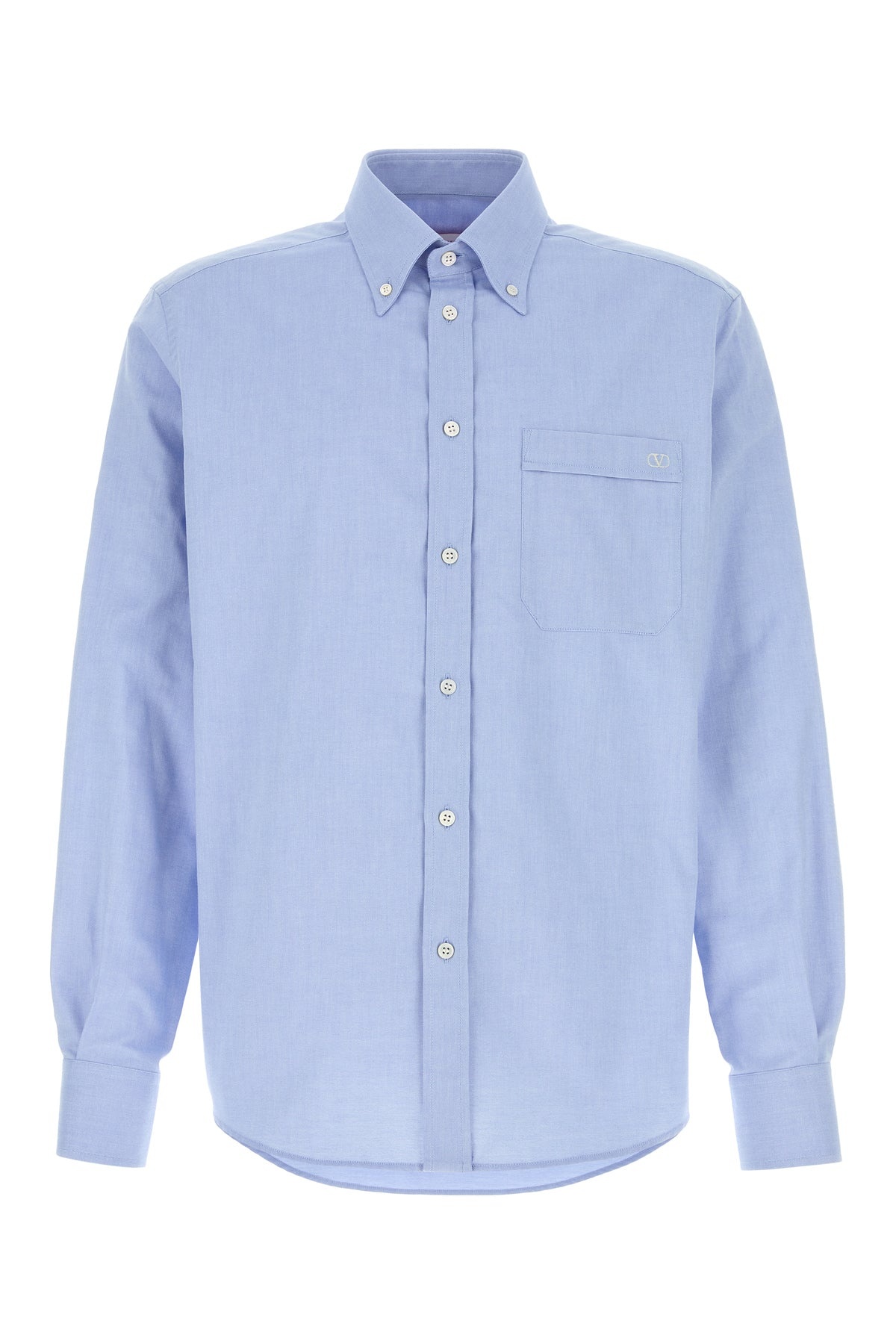 Shirt realized in pure cotton oxford characterized by contrasting VLogo embroidery on the chest. - Button-down collar - Buttons closure - Chest pocket - Buttoned rounded cuffs - Rear yoke DETAILS Powder blue oxford shirt Exterior: 100% Cotton Made in italy Model is 190 cm and is wearing a size 40