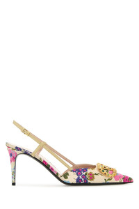 Slingback realizzate in fabric characterized by floral print on the entire surface enriched by VLogo Signature metal detail on the toe. - Adjustable ankle strap closure - Pointed toe - Printed logo on the inside - Stiletto heel DETAILS Printed fabric VLogo Signature pumps Exterior: 100% Fabric Interior: 100% Leather Sole: Leather Made in italy Heel height: 8 cm