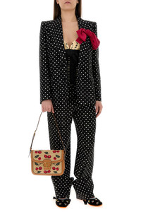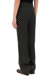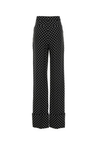 Pant realized in viscose supergran characterized by Plusdepois print on the entire surface. - Belt loops at the waist - Concealed zip and hook closure at the front - Slant pockets and two slit pockets at the back - Folded hemline - Central ironed pleats DETAILS Printed supergran pant Exterior: 100% Viscose Made in italy Sample size: 40