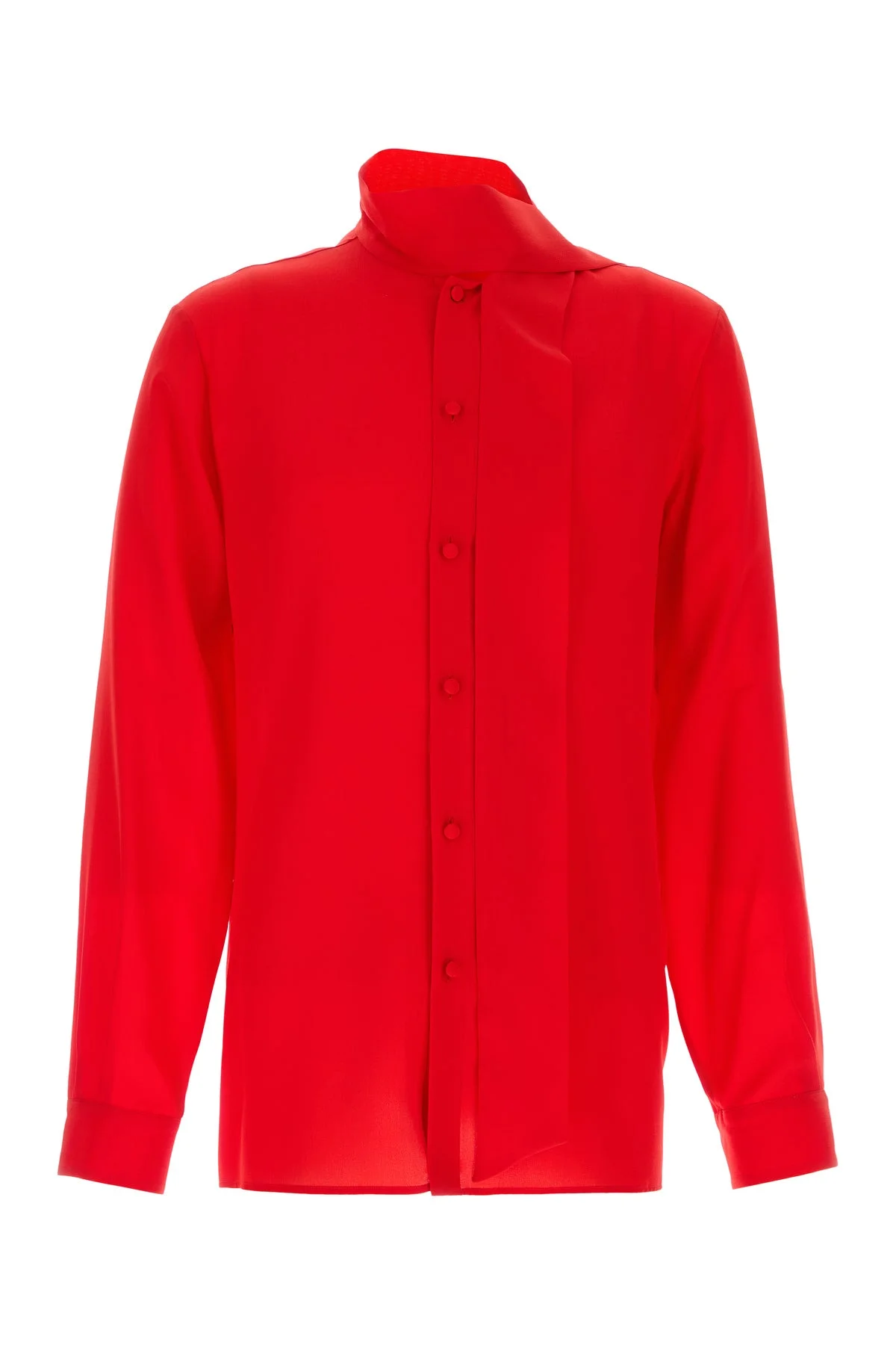 Shirt realized in pure silk crepe characterized by laces to tie on the neck. - Buttons closure - Angle cuffs with button - Rear yoke DETAILS Red crepe shirt Exterior: 100% Silk Made in italy Sample size: 40